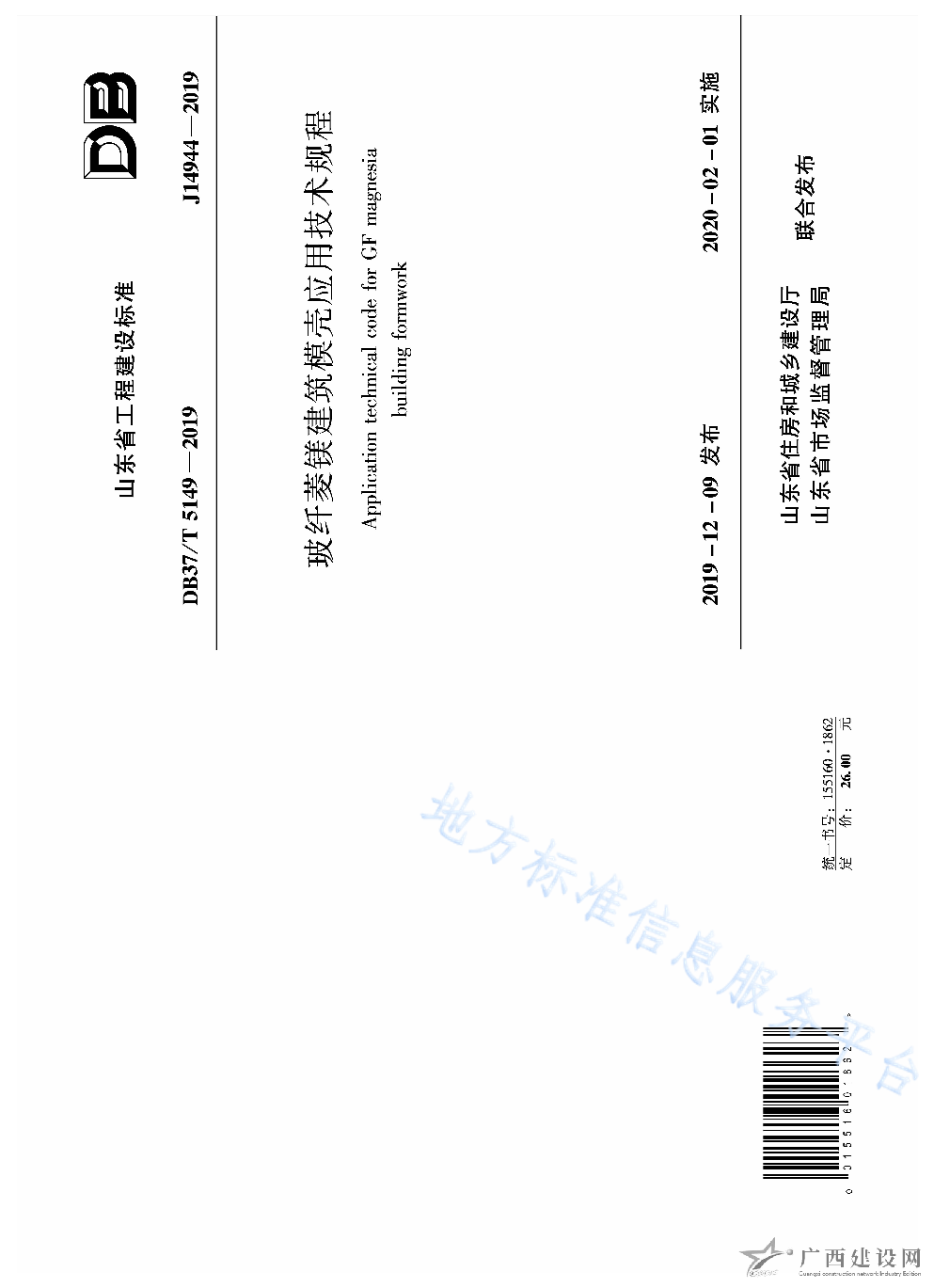 DB37 T5149-2019玻纖菱鎂建筑模殼應(yīng)用技術(shù)規(guī)程
