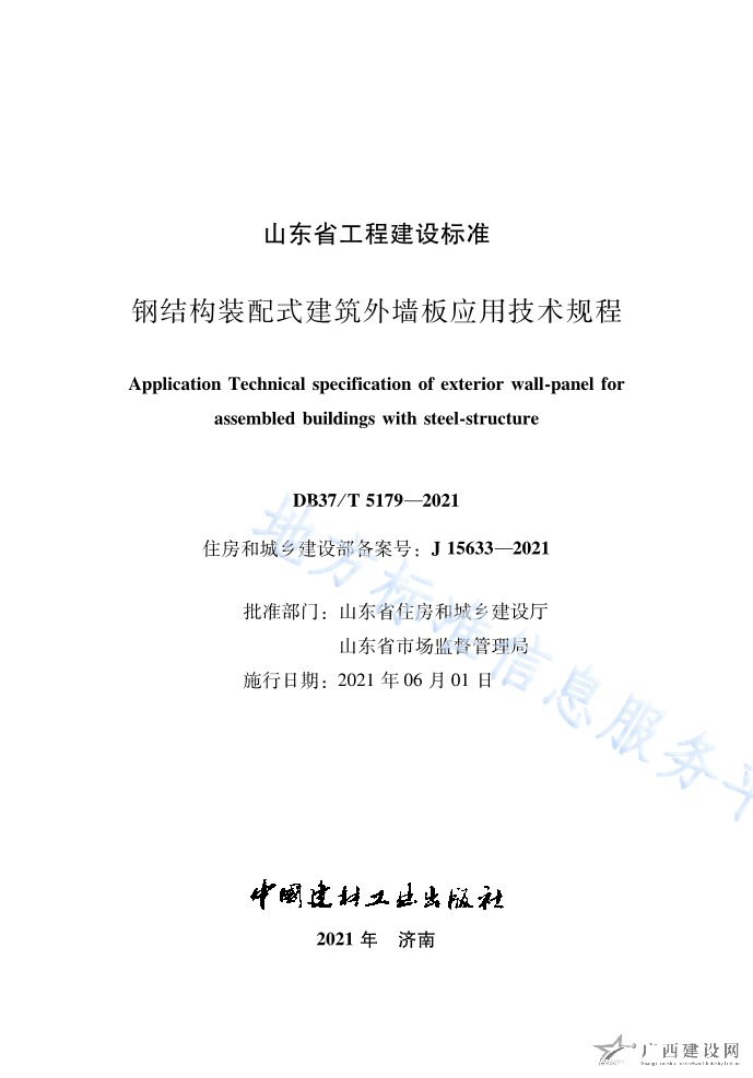 DB37 T5179-2021鋼結(jié)構(gòu)裝配式建筑外墻板應(yīng)用技術(shù)規(guī)程