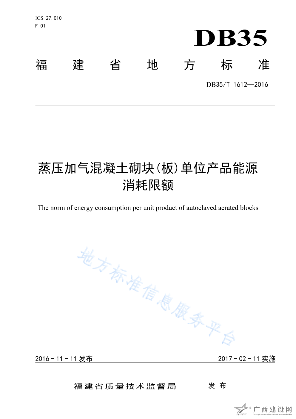 DB36 793-2014蒸壓加氣混凝土能耗限額及計算方法