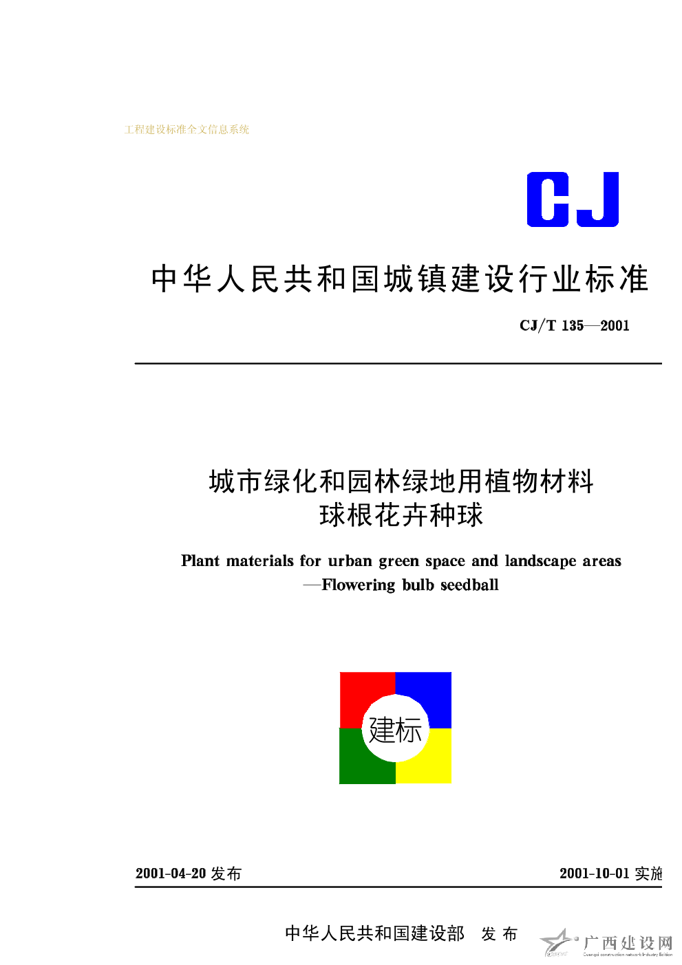 城市綠化和園林綠地用植物材料球根花卉種球 CJ/T135—2001