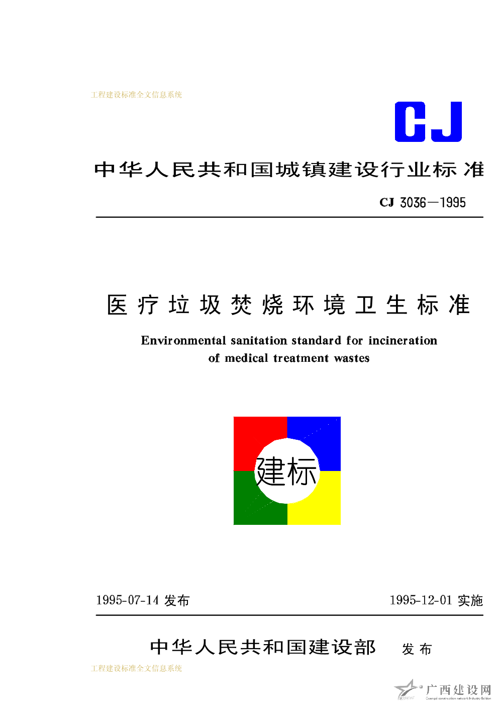 醫(yī)療垃圾焚燒環(huán)境衛(wèi)生標準 CJ3036-1995