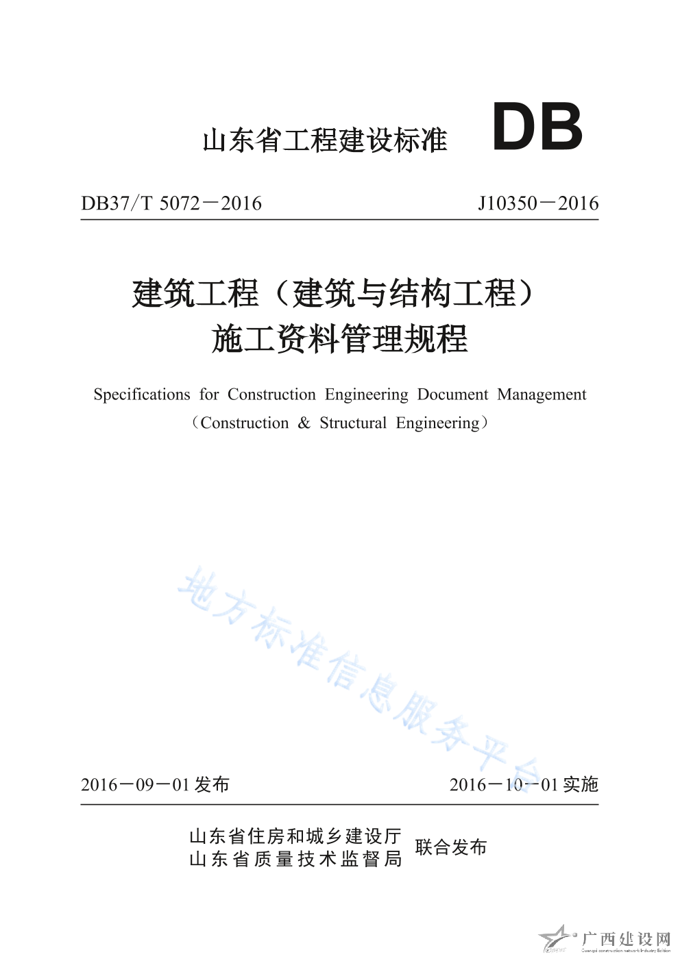 DB37 T5072-2016建筑工程(建筑與結(jié)構(gòu)工程)施工資料管理規(guī)程
