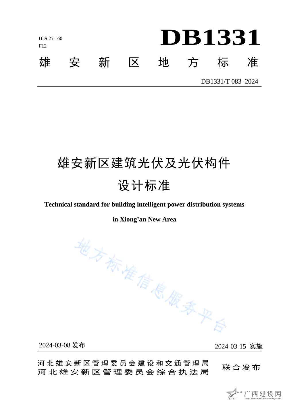 DB133 1T 083-2024《雄安新區建筑光伏及光伏構件設計標準》