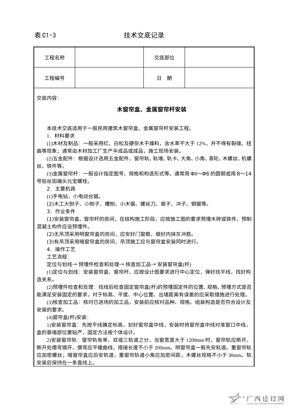 窗簾盒、窗簾桿及窗簾軌安裝施工技術交底