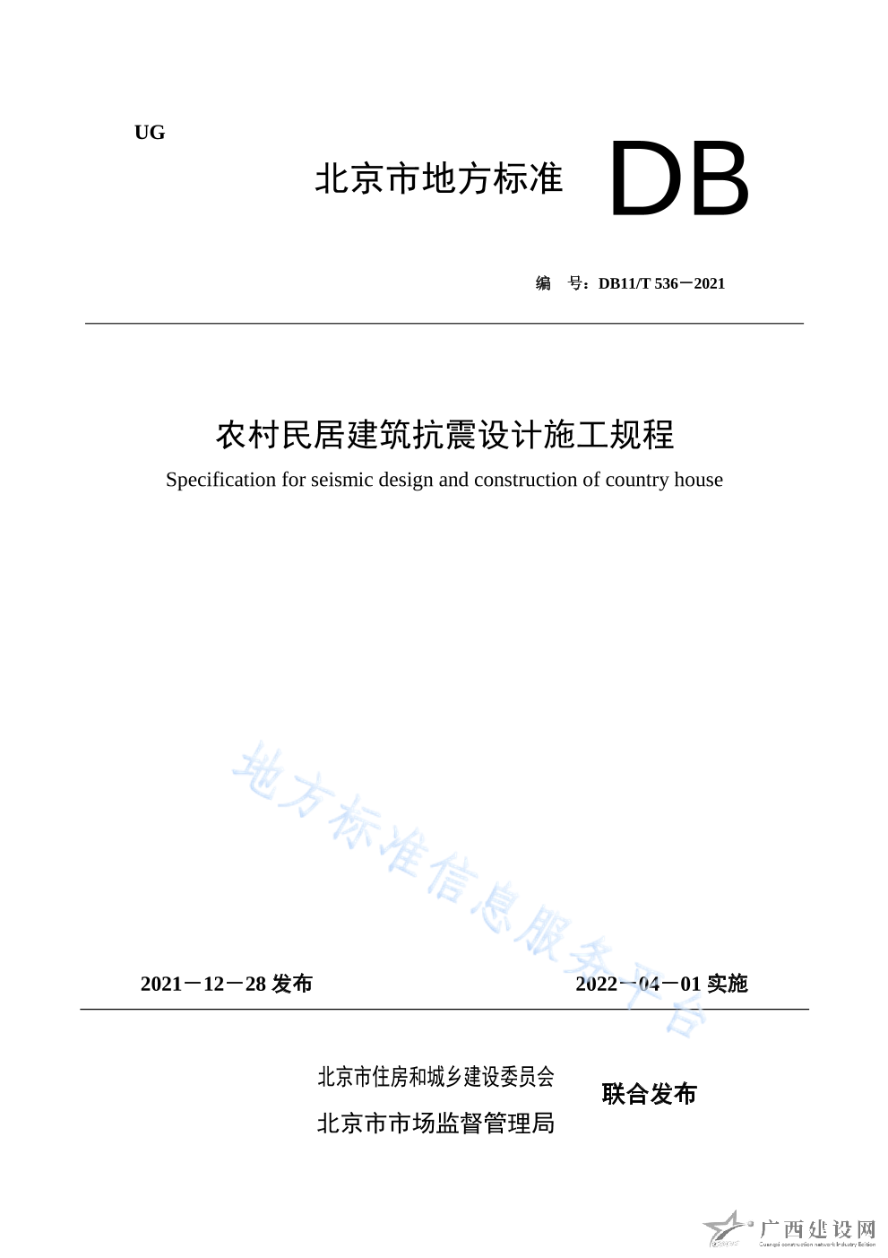 DB11 T+536-2021農(nóng)村民居建筑抗震設(shè)計施工規(guī)程