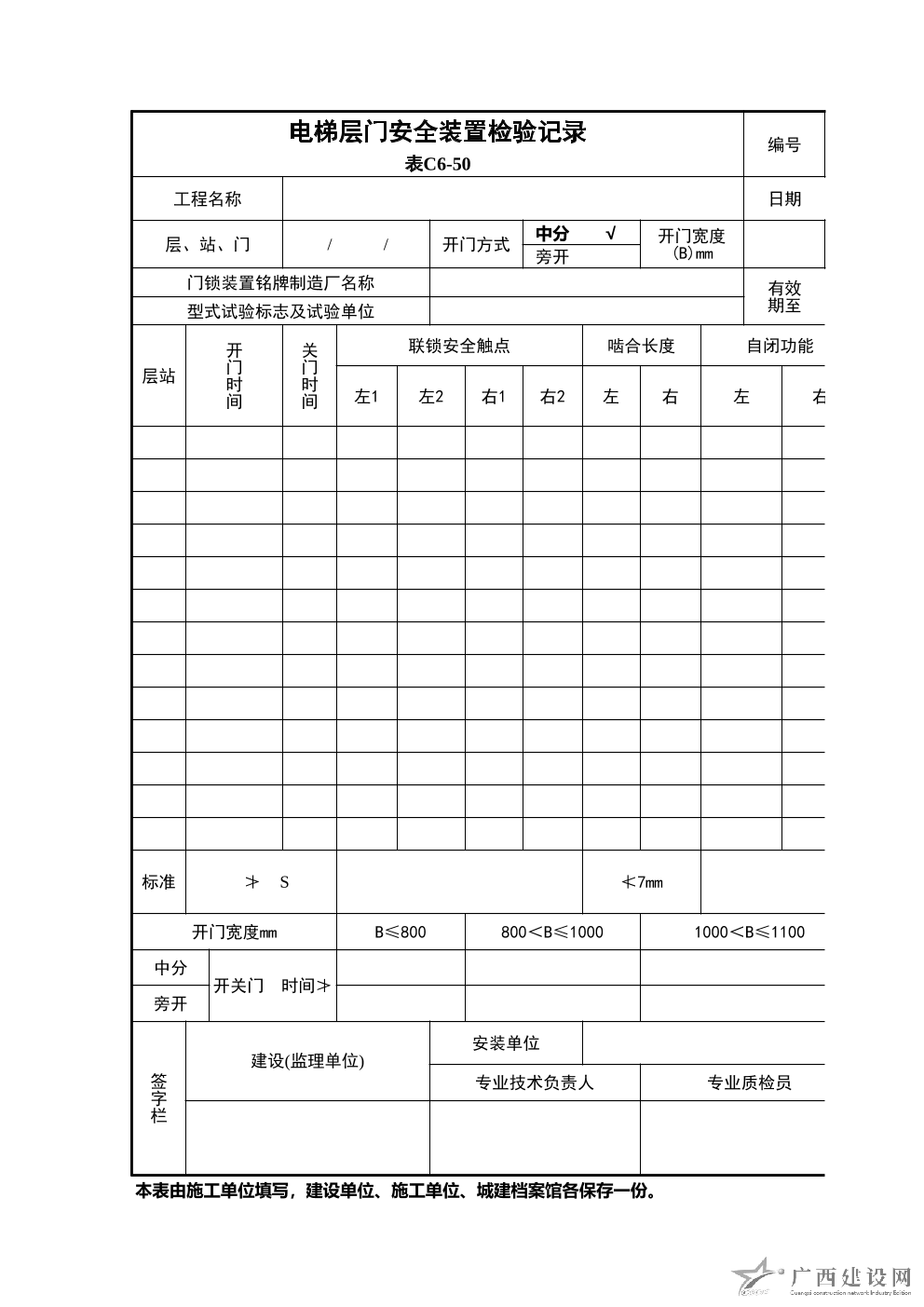 電梯電氣安全裝置檢驗(yàn)記錄表C6-51