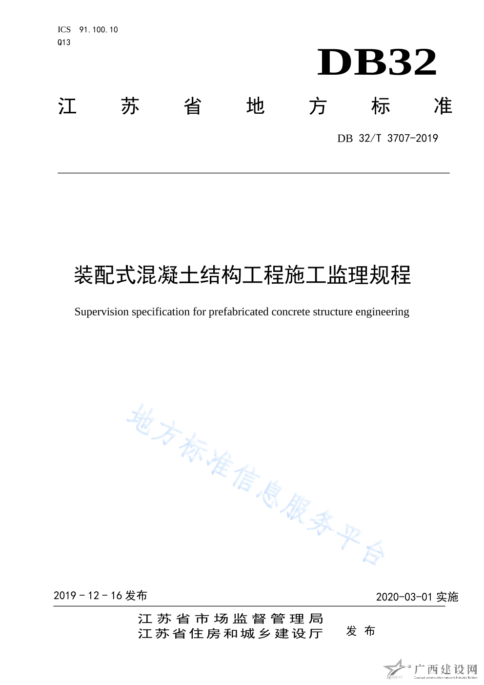 DB32 T3707-2019裝配式混凝土結(jié)構(gòu)工程施工監(jiān)理規(guī)程