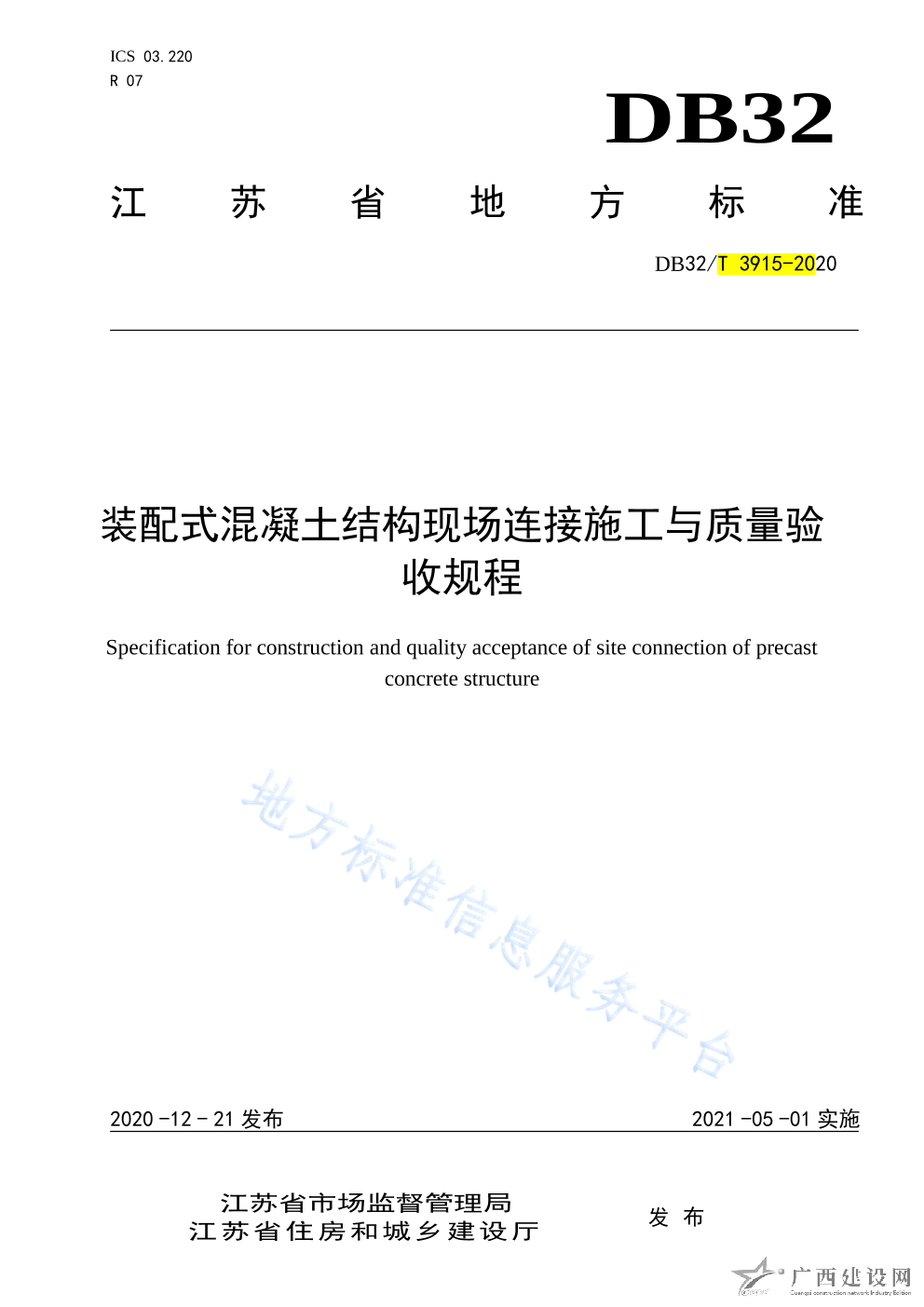 DB32 T3915-2020裝配式混凝土結(jié)構(gòu)現(xiàn)場(chǎng)連接施工與質(zhì)量驗(yàn)收規(guī)程