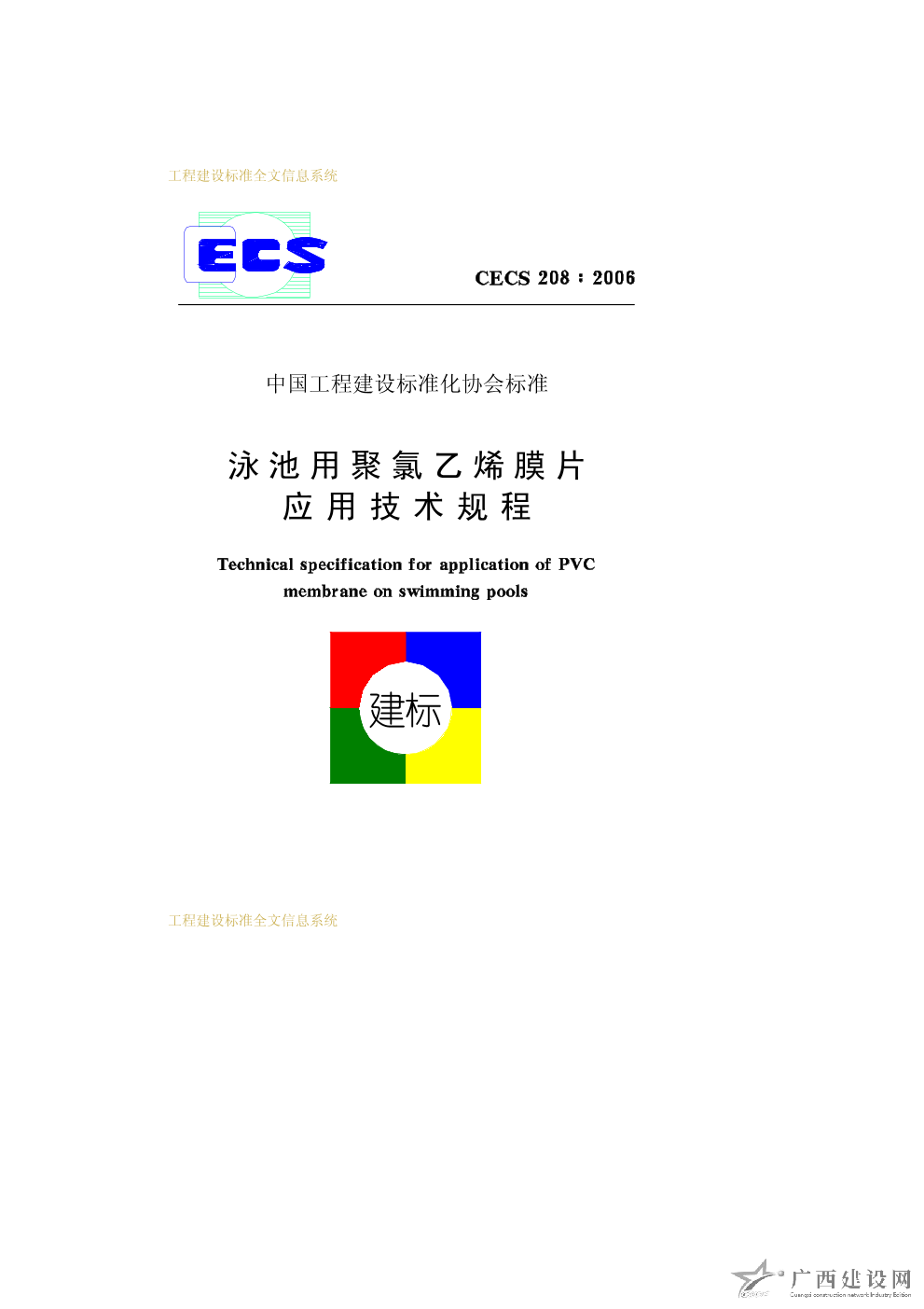 泳池用聚氯乙烯膜片應用技術規(guī)程 CECS208-2006