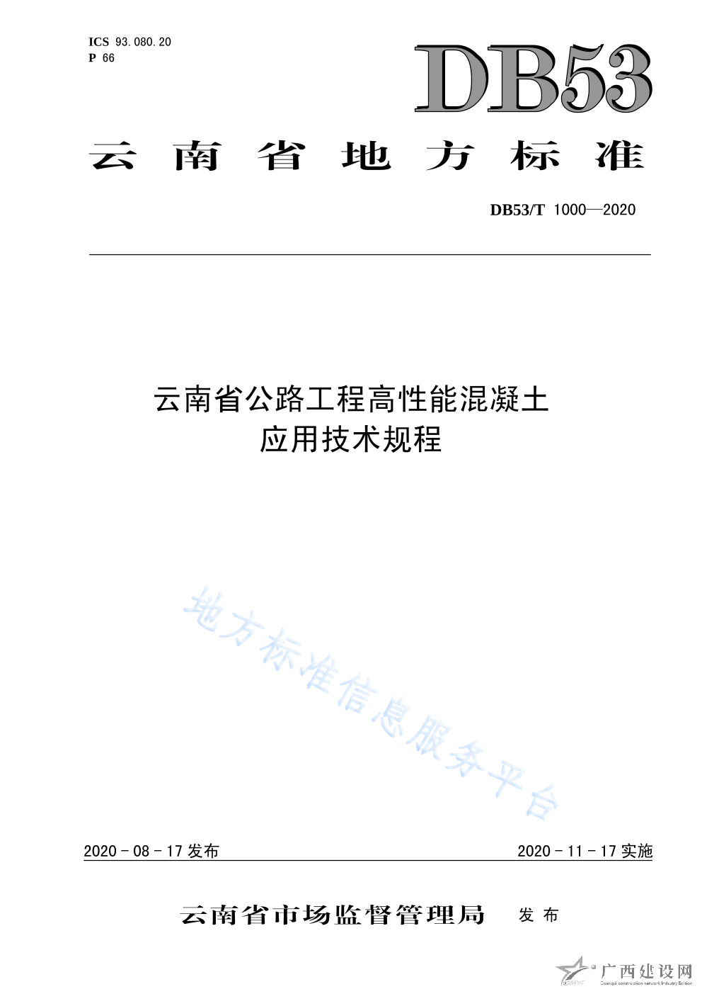 DB53 T1000-2020云南省公路工程高性能混凝土應用技術規(guī)程