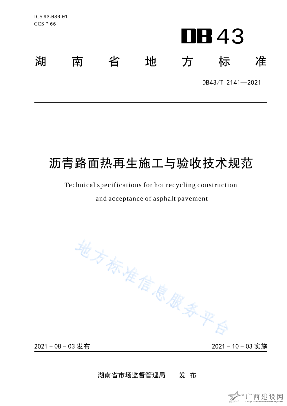 DB43 T2141-2021瀝青路面熱再生施工與驗(yàn)收技術(shù)規(guī)范