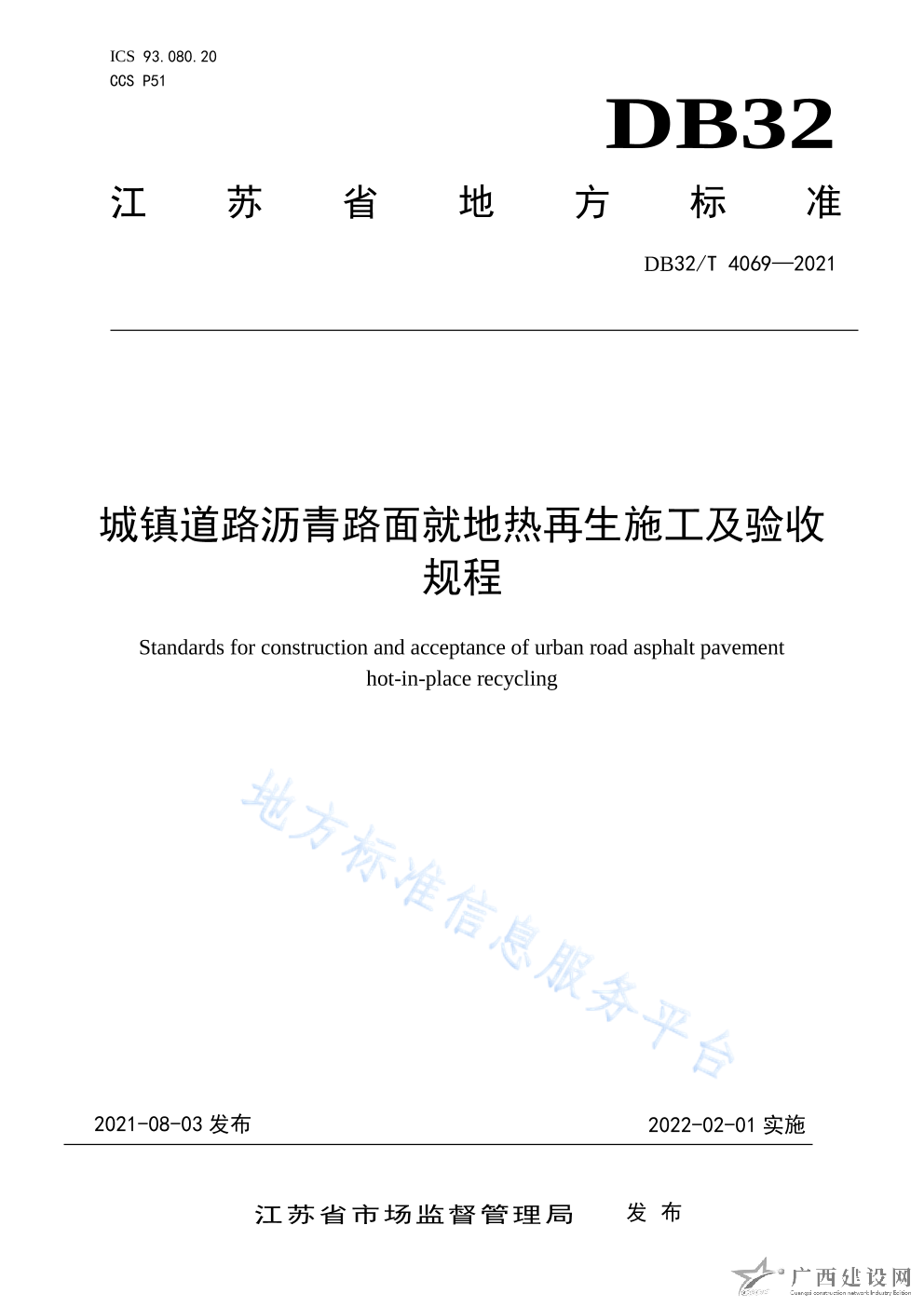 DB32 T4069-2021城鎮(zhèn)道路瀝青路面就地?zé)嵩偕┕ぜ膀?yàn)收規(guī)程
