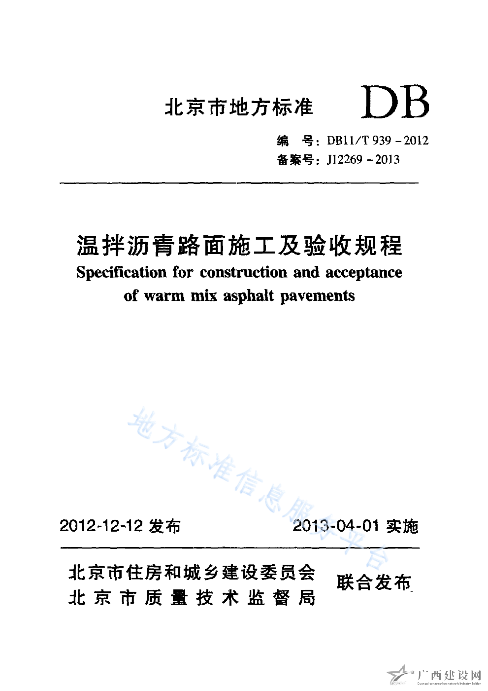 DB11 T_939-2012_溫拌瀝青路面施工及驗(yàn)收規(guī)程