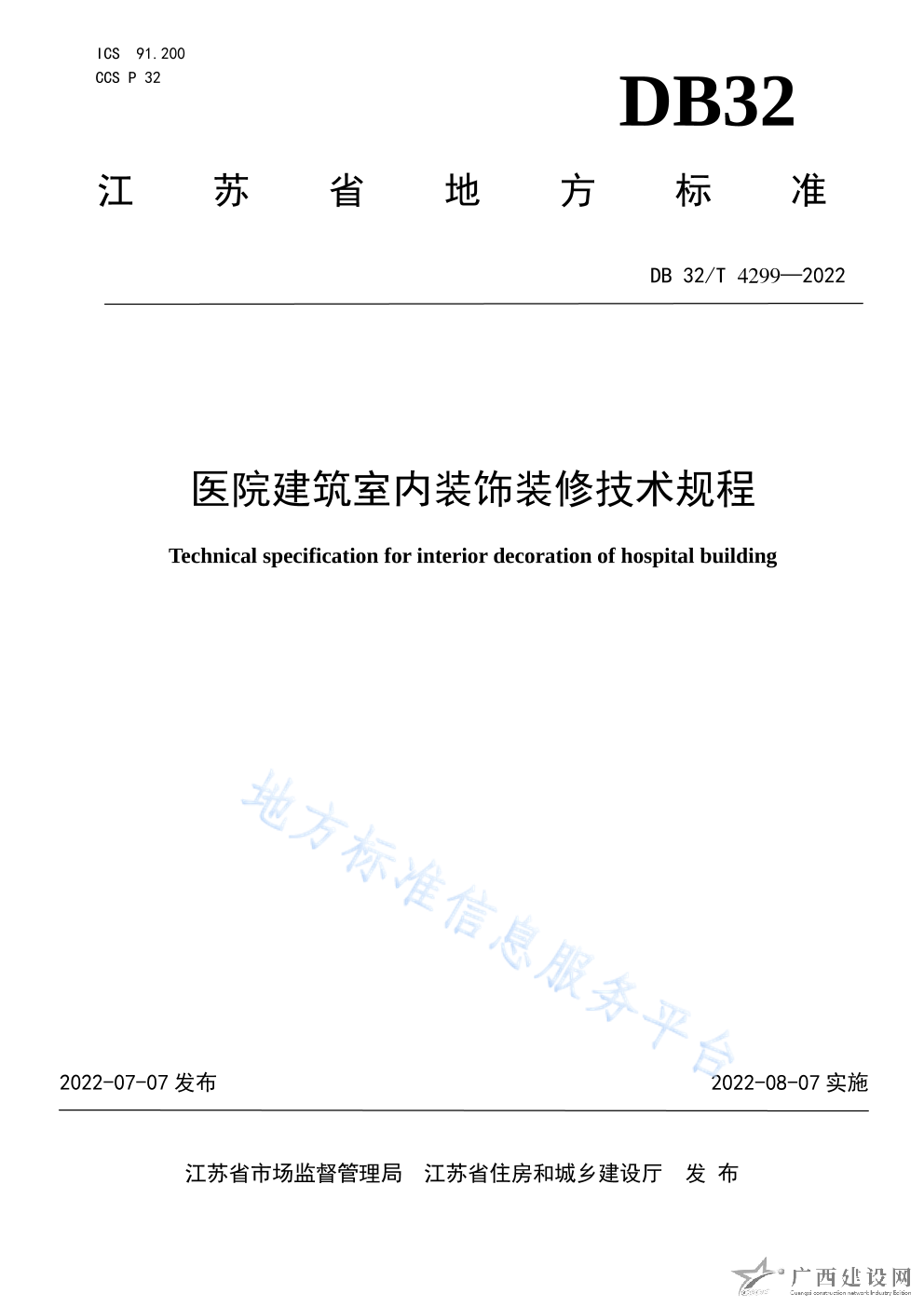 DB32 T4299-2022醫(yī)院建筑室內(nèi)裝飾裝修技術(shù)規(guī)程