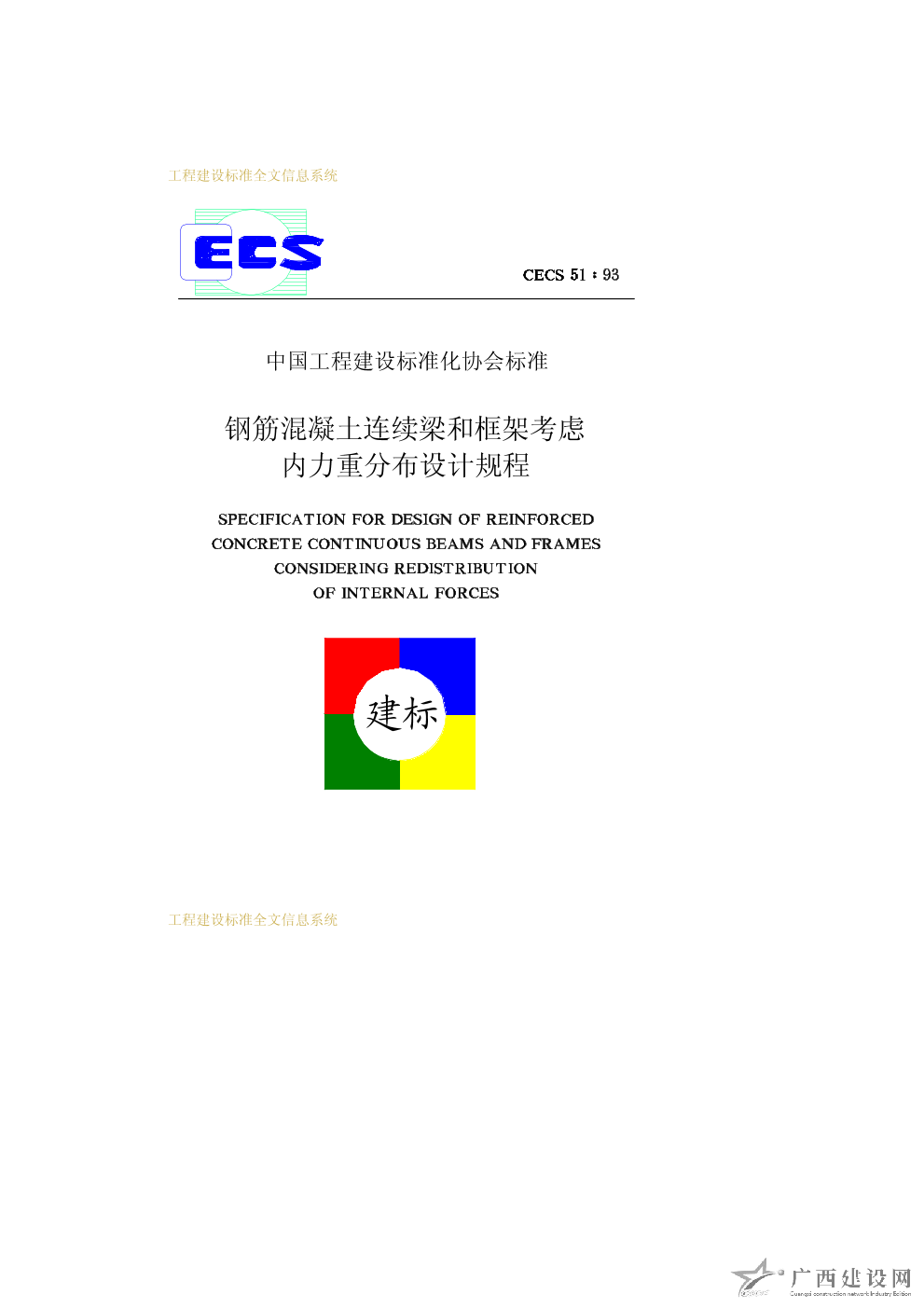 鋼筋混凝土連續(xù)梁和框架考慮內(nèi)力重分布設(shè)計(jì)規(guī)程 CECS51∶93
