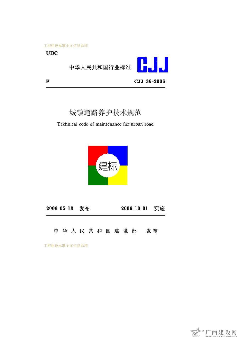 城鎮(zhèn)道路養(yǎng)護(hù)技術(shù)規(guī)范 CJJ36-2006