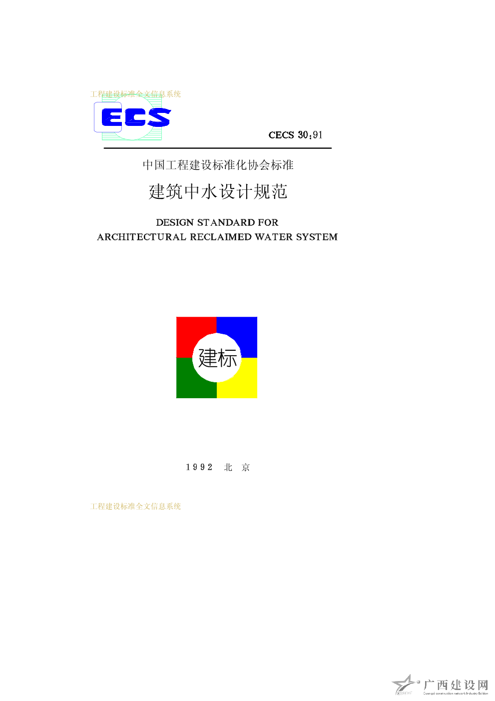 建筑中水設計規范 CECS30