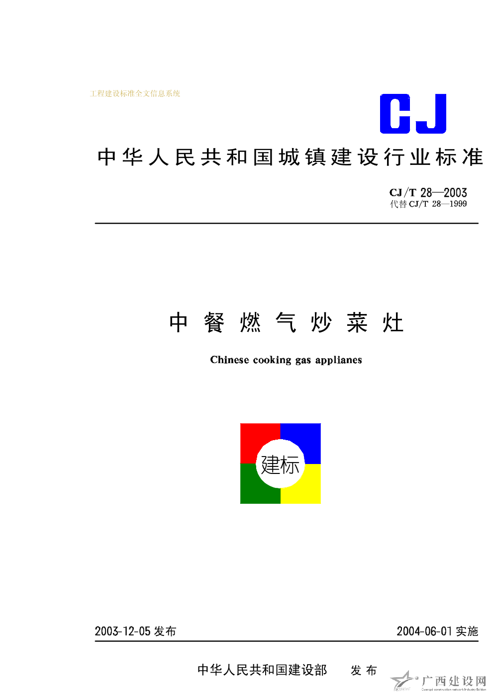 中餐燃?xì)獬床嗽? CJ/T28-2003