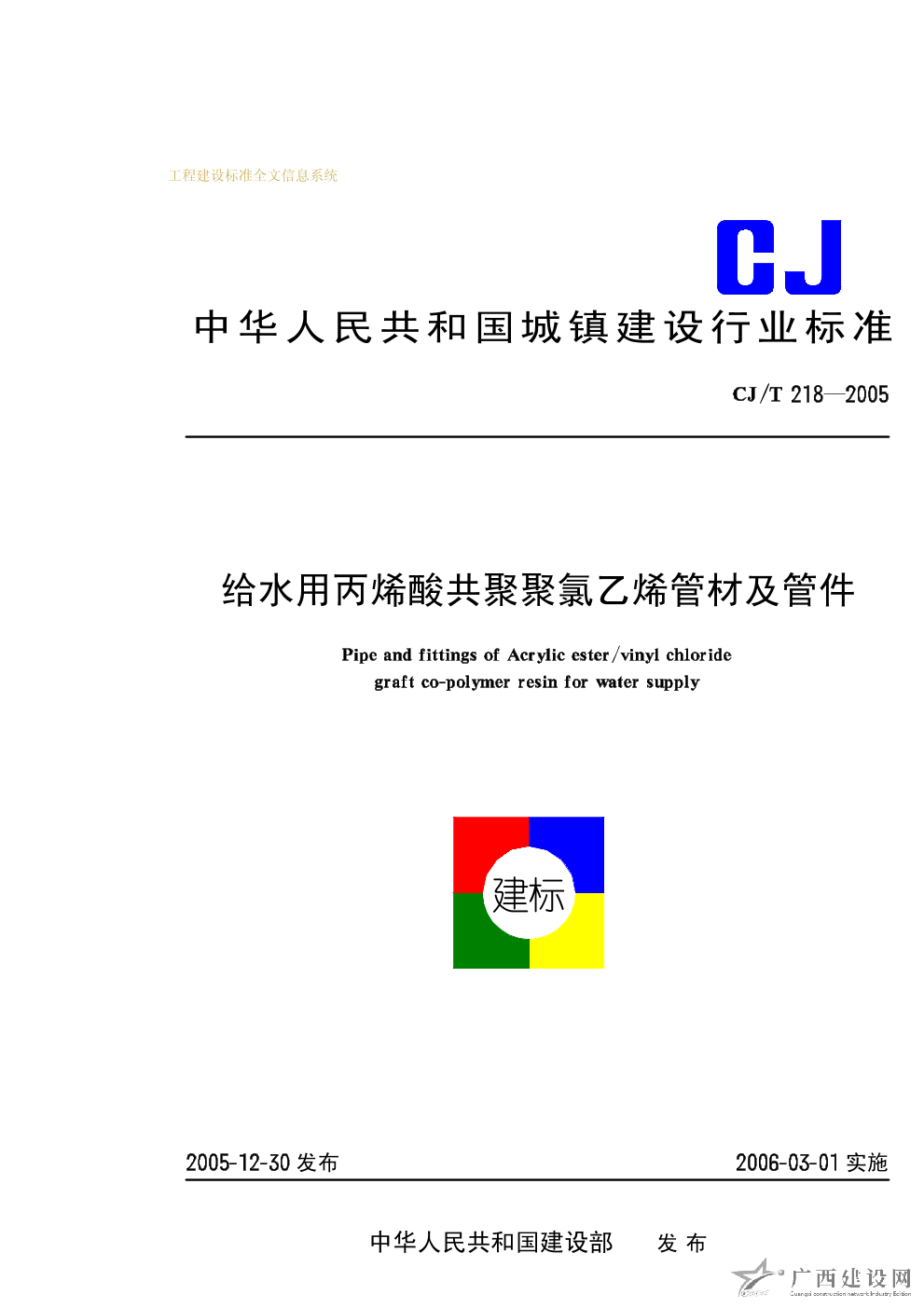 給水用丙烯酸共聚聚氯乙烯管材及管件 CJ/T218-2005