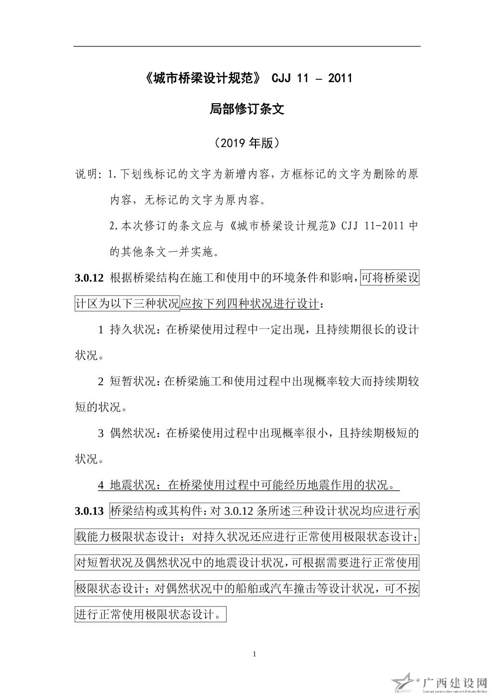 CJJ11-2011:《城市橋梁設(shè)計(jì)規(guī)范》(局部修訂)條文部分