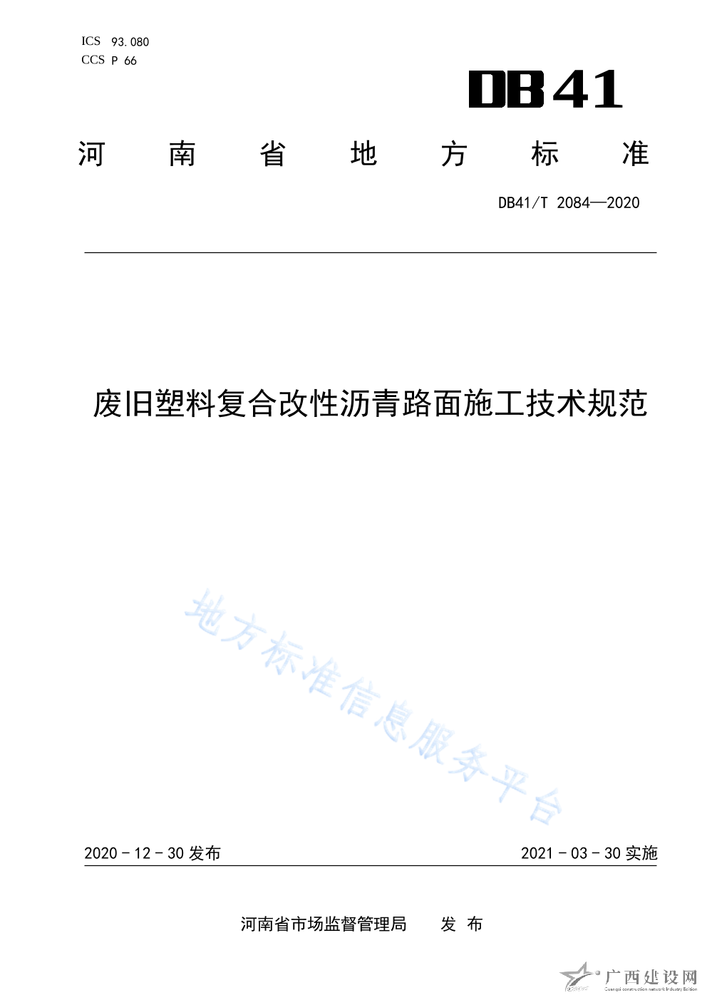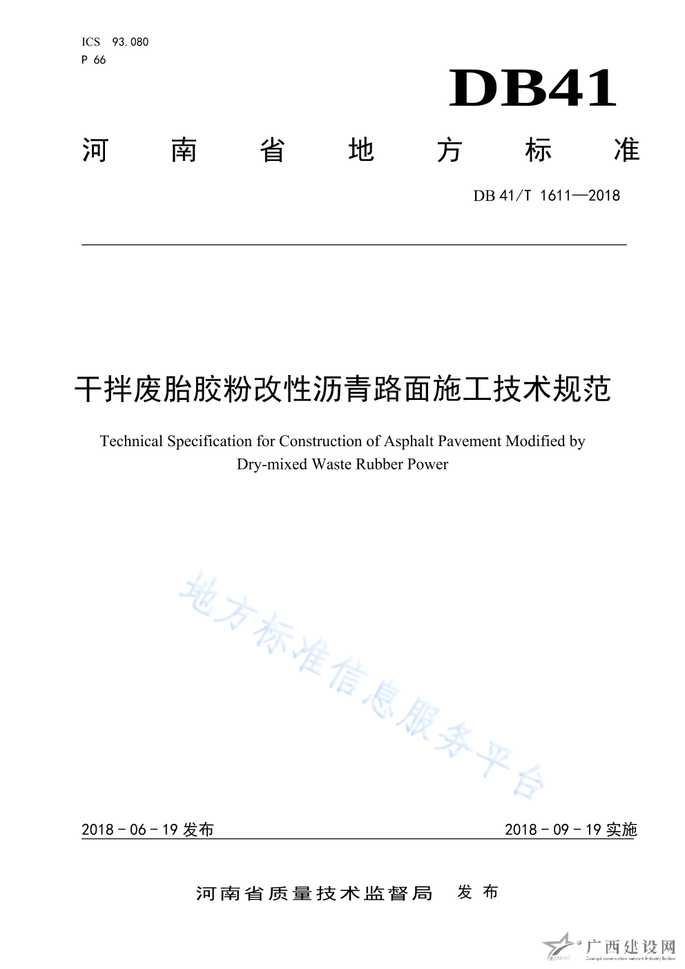 DB4110 T2-2020活化膠粉復合改性瀝青路面施工技術規范
