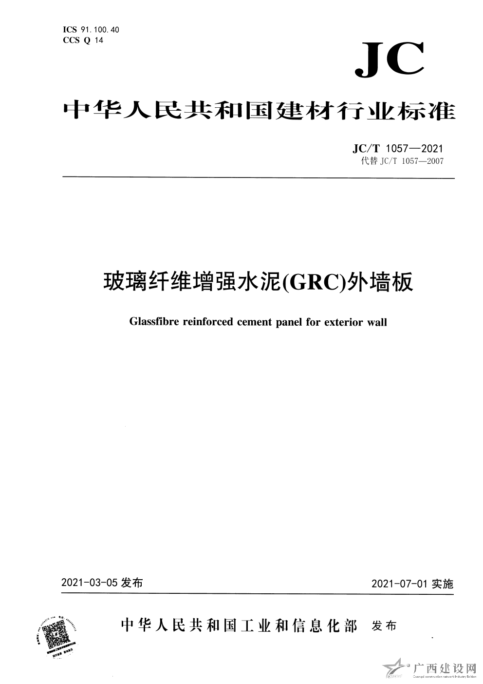 JC T 1057-2021 玻璃纖維增強(qiáng)水泥(GRC)外墻板
