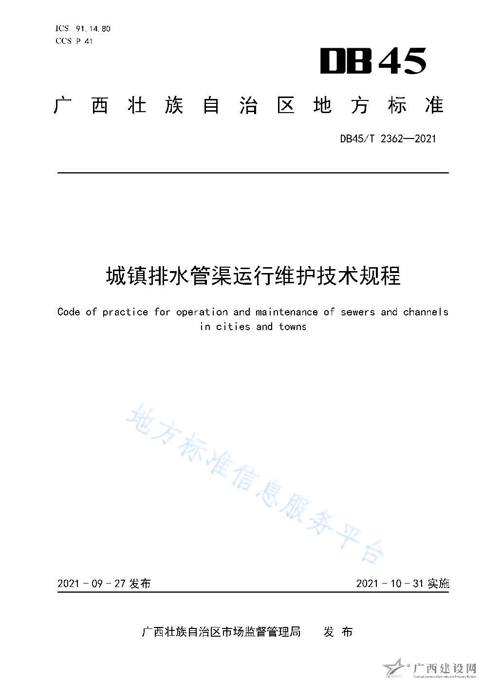 DB45T 2362-2021城鎮排水管渠運行維護技術規程