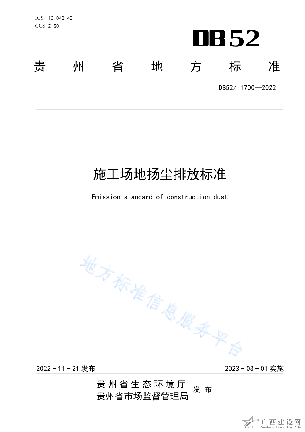 DB52 1700-2022施工場地?fù)P塵排放標(biāo)準(zhǔn)
