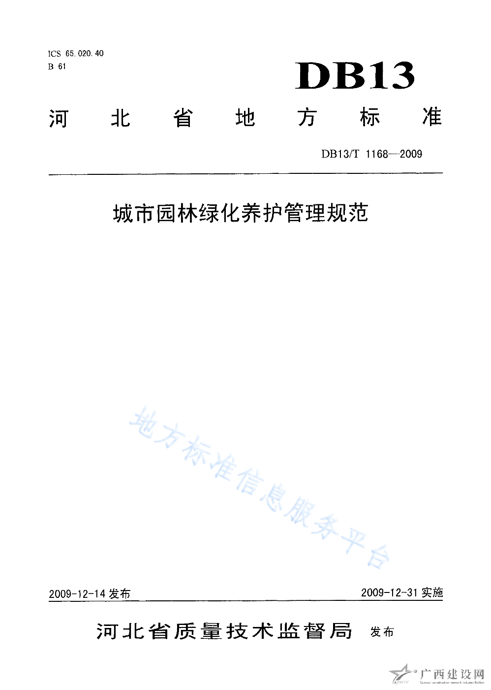DB13 T 1168-2009城市園林綠化養(yǎng)護(hù)管理規(guī)范