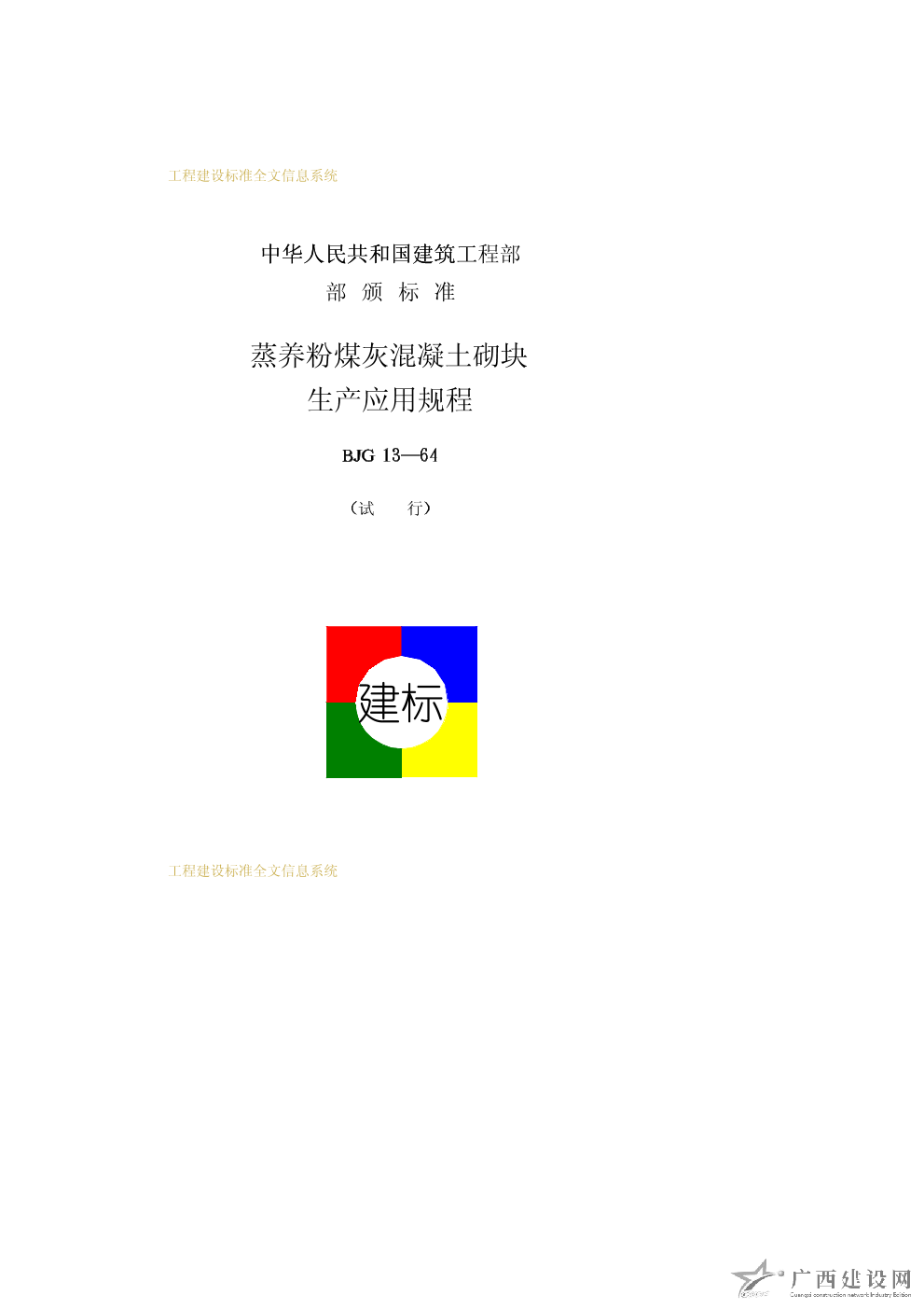 蒸養粉煤灰混凝土砌塊生產應用規程 BJG13—64