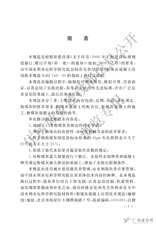 粉煤灰在混凝土和砂漿中應用技術規程 JGJ28—86