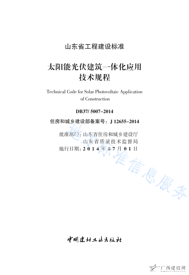 DB37 5007-2014太陽能光伏建筑一體化應(yīng)用技術(shù)規(guī)程