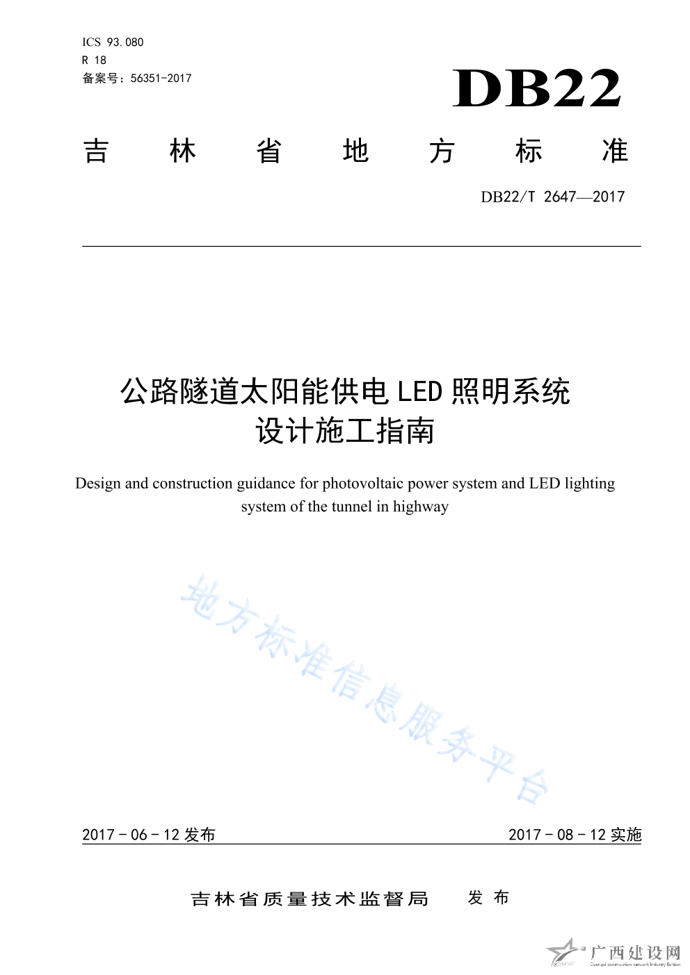 DB22 T2647-2017公路隧道太陽能供電LED照明系統(tǒng)設(shè)計施工指南