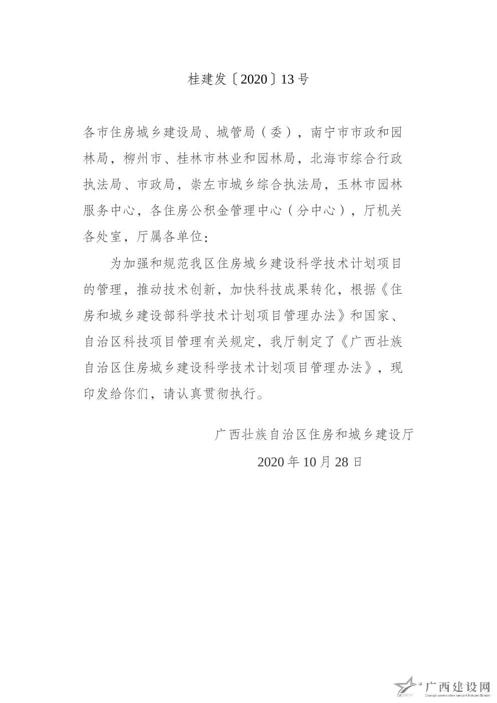 《廣西壯族自治區住房城鄉建設科學技術計劃項目管理辦法》政策解讀材料