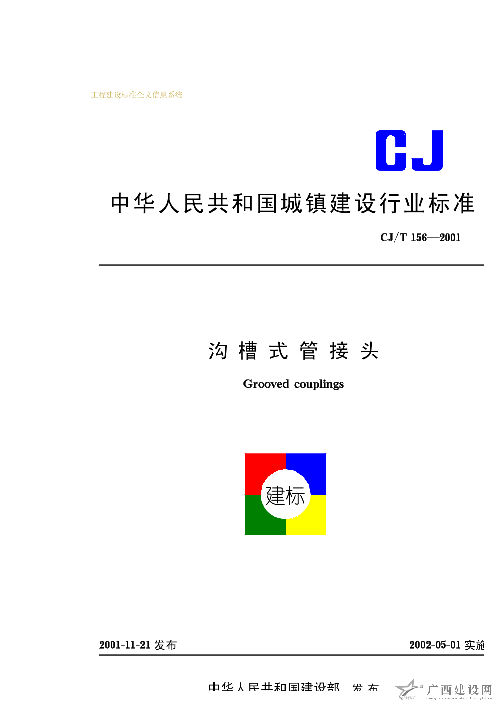 溝槽式管接頭 CJ/T156—2001