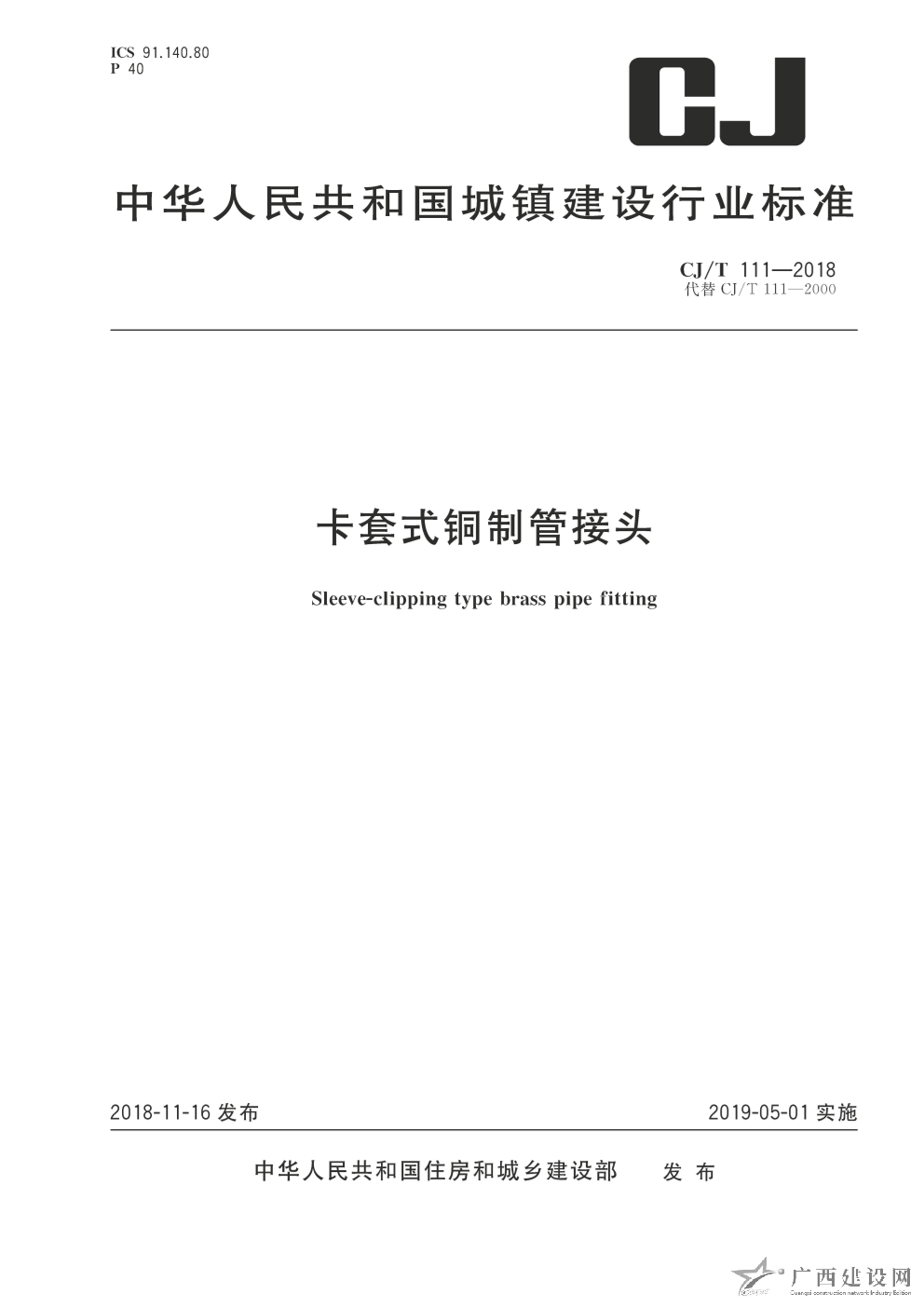 鋁塑復合管用卡套式銅制管接頭 CJ/T111-2000