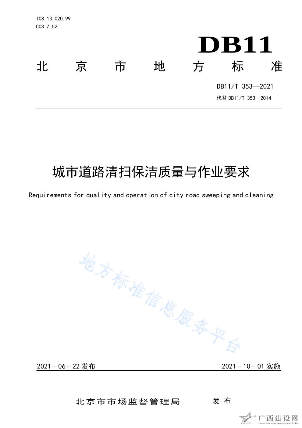DB11 T+353-2021城市道路清掃保潔質(zhì)量與作業(yè)要求