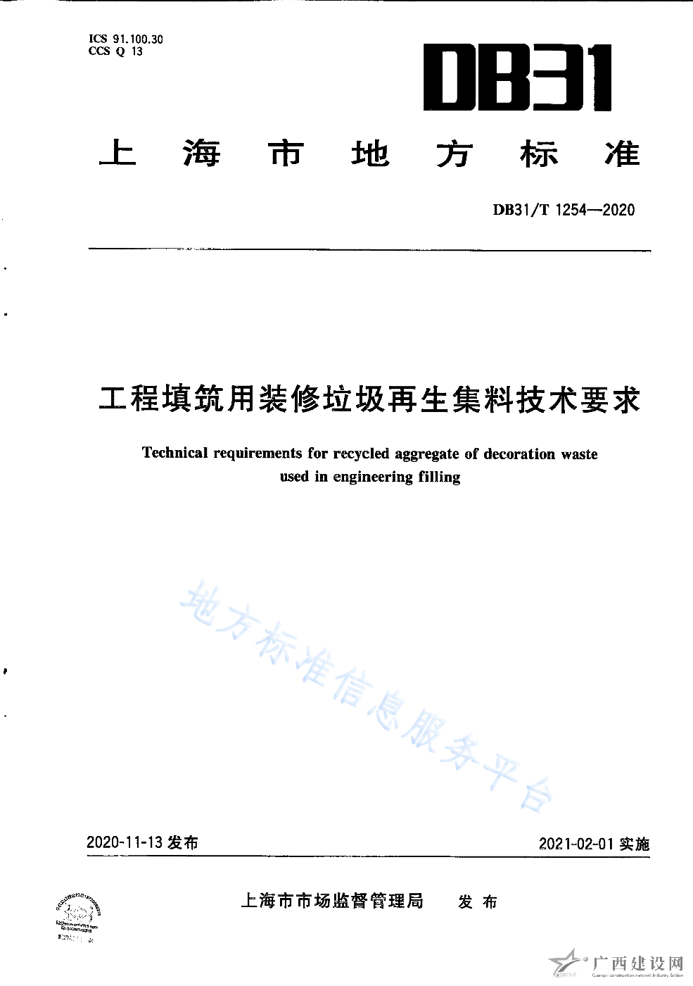 DB31 T1254-2020工程填筑用裝修垃圾再生集料技術要求