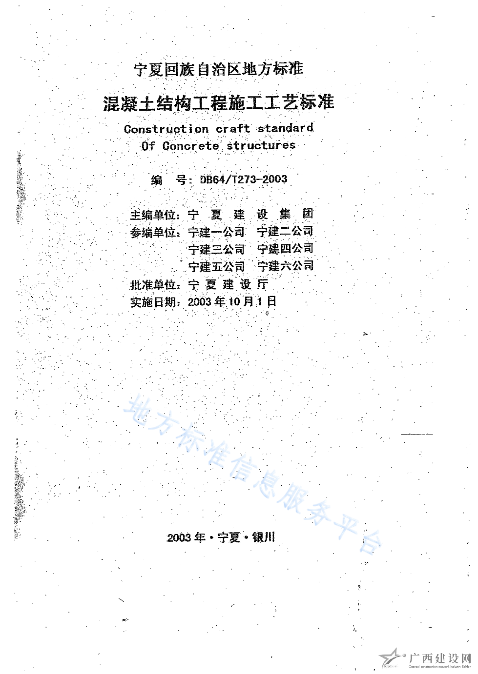 DB64 273-2003混凝土結(jié)構(gòu)工程施工工藝標(biāo)準(zhǔn)