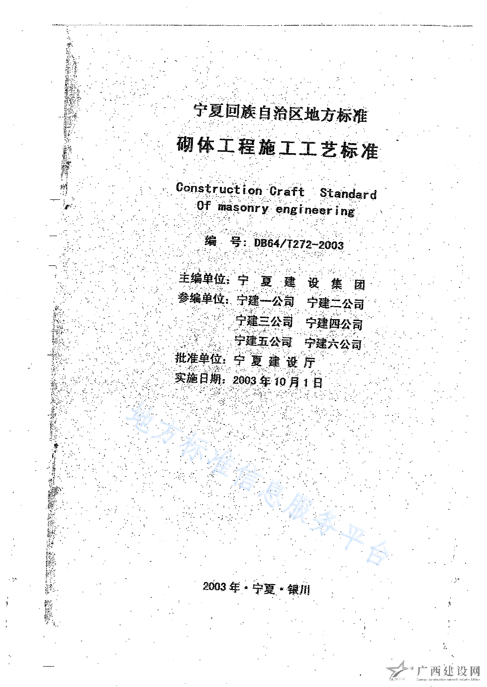 DB64 272-2003砌體工程施工工藝標(biāo)準(zhǔn)