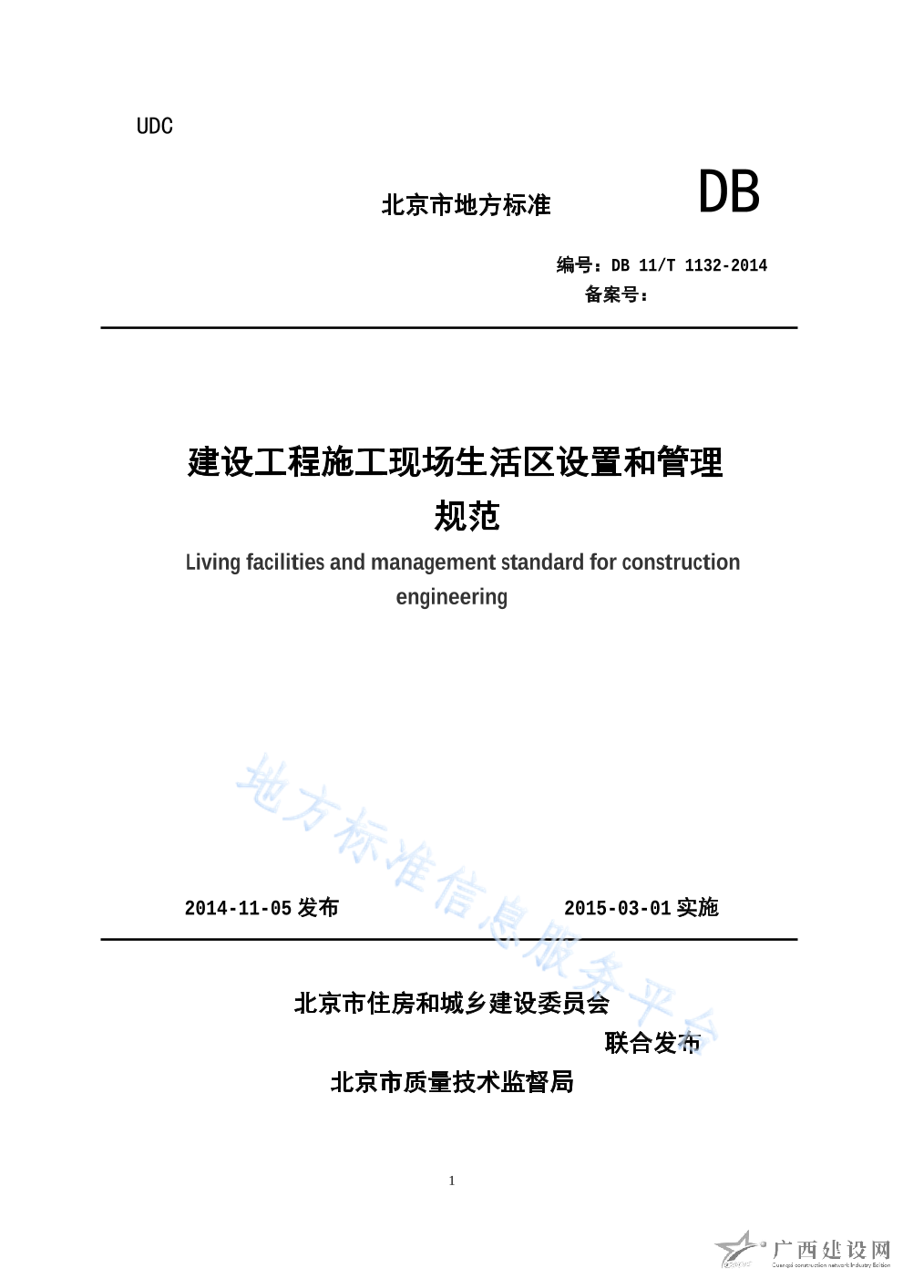 DB11 T_1132-2014建設(shè)工程施工現(xiàn)場生活區(qū)設(shè)置和管理規(guī)范