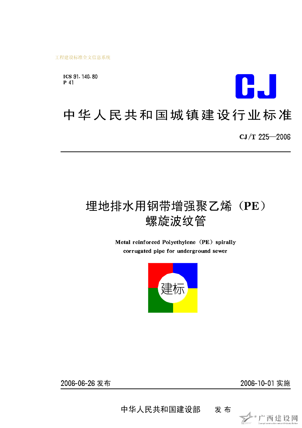 埋地排水用鋼帶增強聚乙烯(PE)螺旋波紋管 CJ/T225-2006