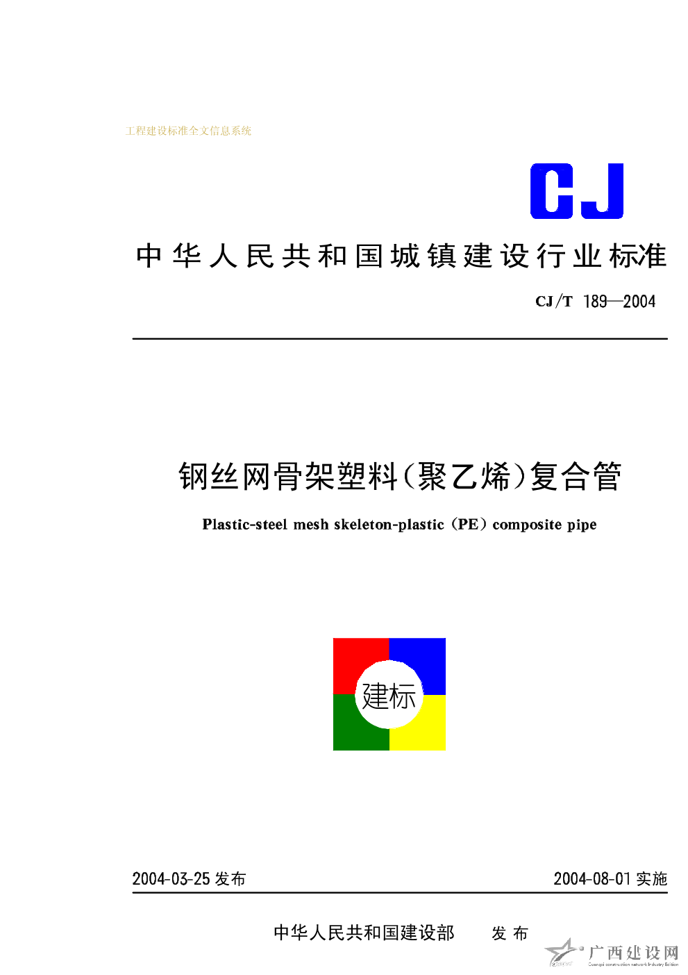 鋼絲網骨架塑料(聚乙烯)復合管 CJ/T189-2004