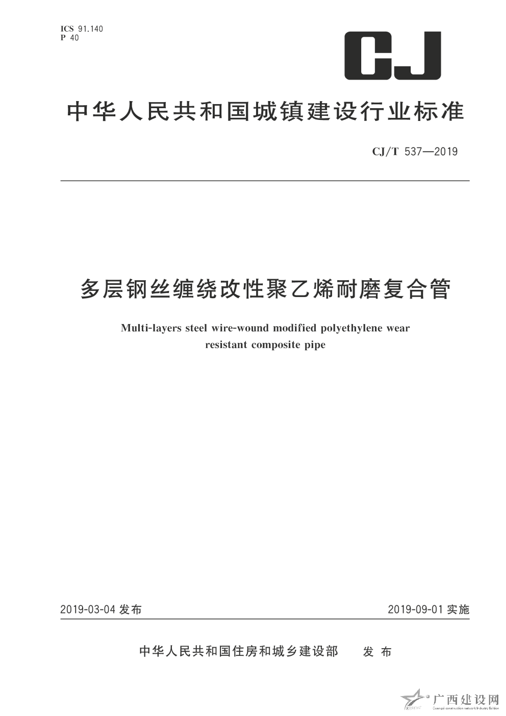 CJT537-2019 多層鋼絲纏繞改性聚乙烯耐磨復合管