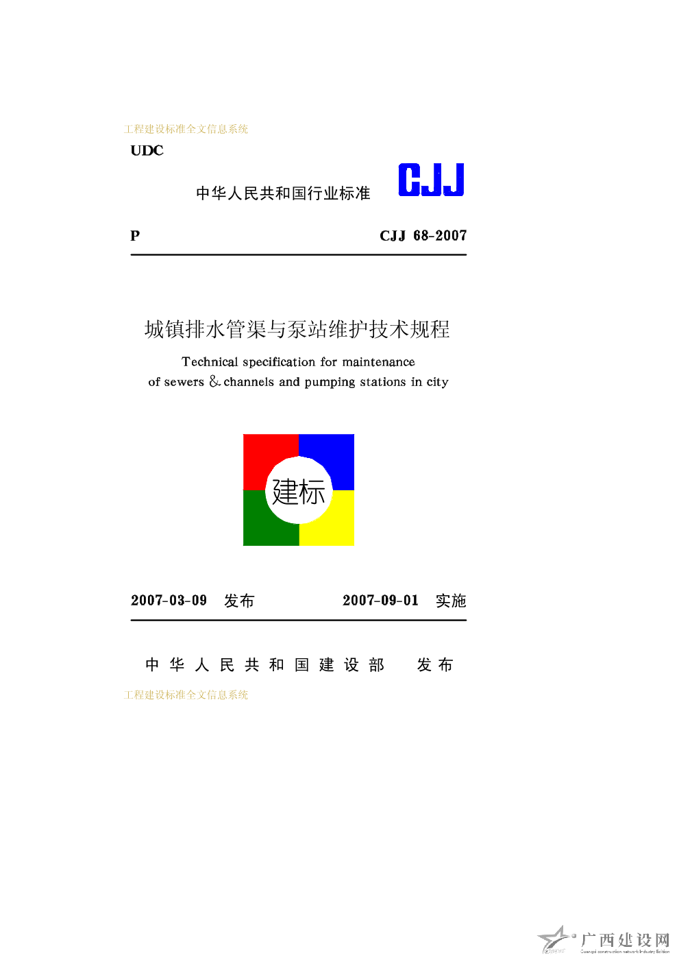 城鎮(zhèn)排水管渠與泵站維護(hù)技術(shù)規(guī)程 CJJ68-2007
