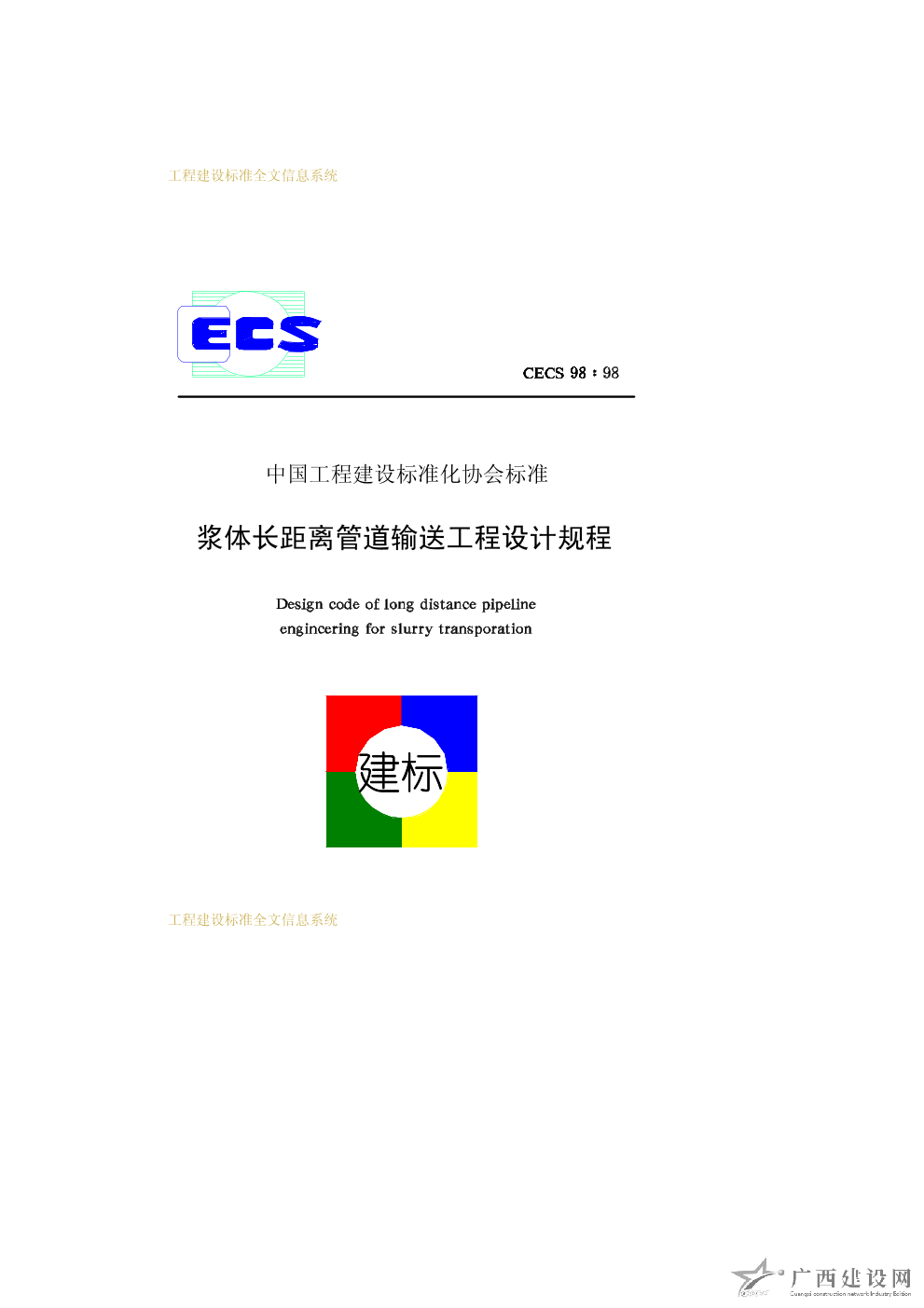 漿體長(zhǎng)距離管道輸送工程設(shè)計(jì)規(guī)程 CECS98∶98