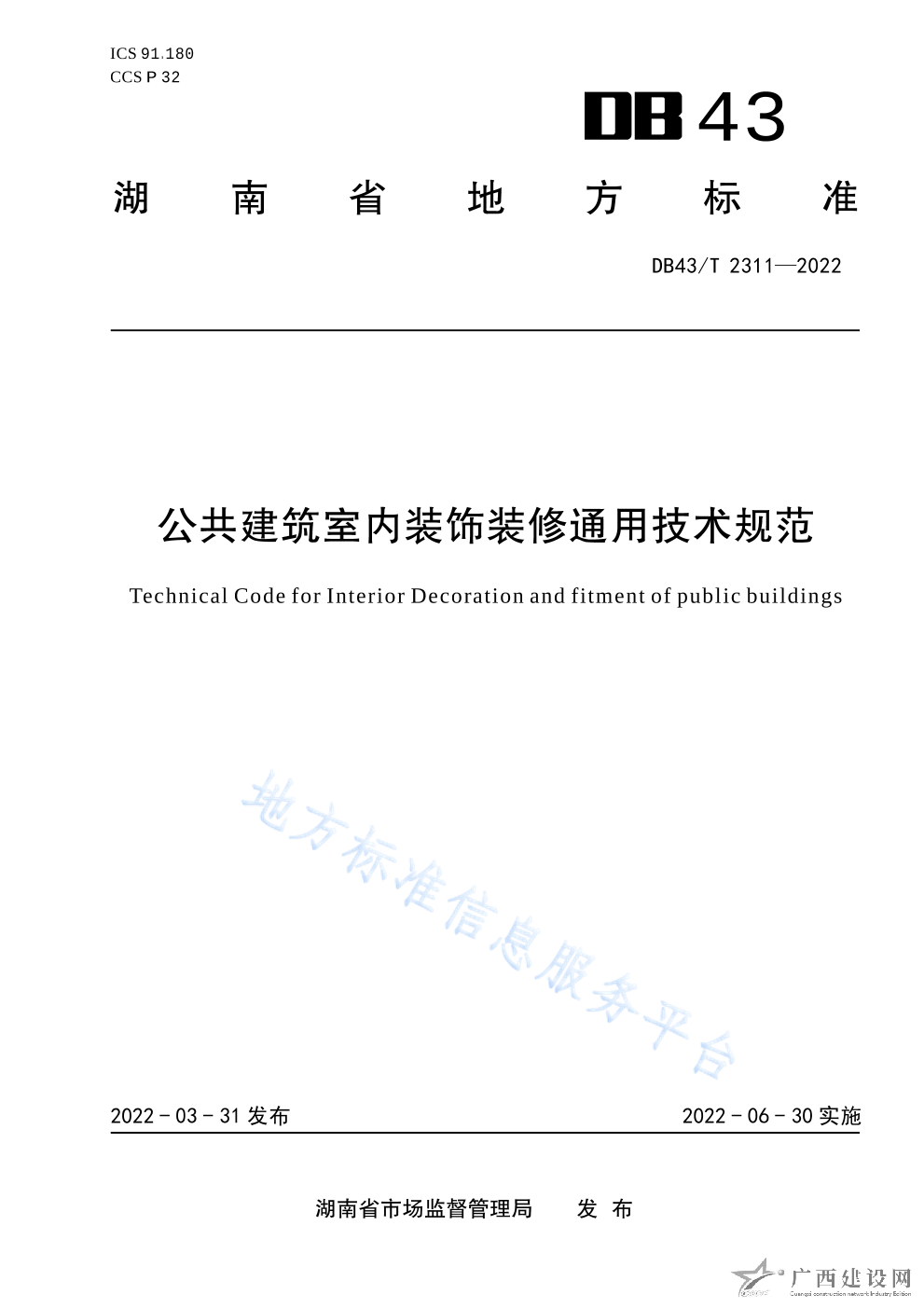 DB43T 2311-2022公共建筑室內裝飾裝修通用技術規范