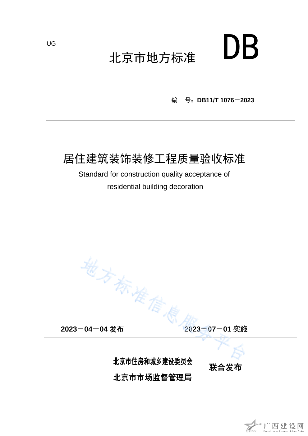 DB11T 1076-2023居住建筑裝飾裝修工程質量驗收標準