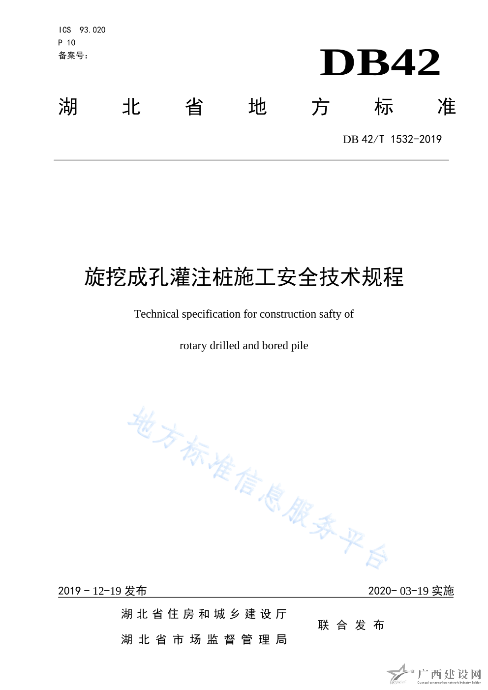 DB42 T1532-2019旋挖成孔灌注樁施工安全技術(shù)規(guī)程