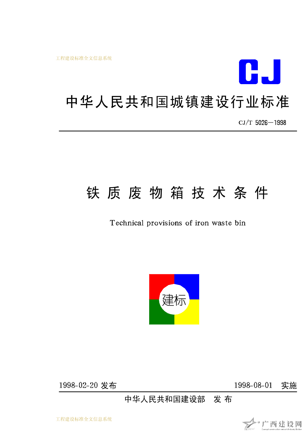 鐵質廢物箱技術條件 CJ/T5026-1998